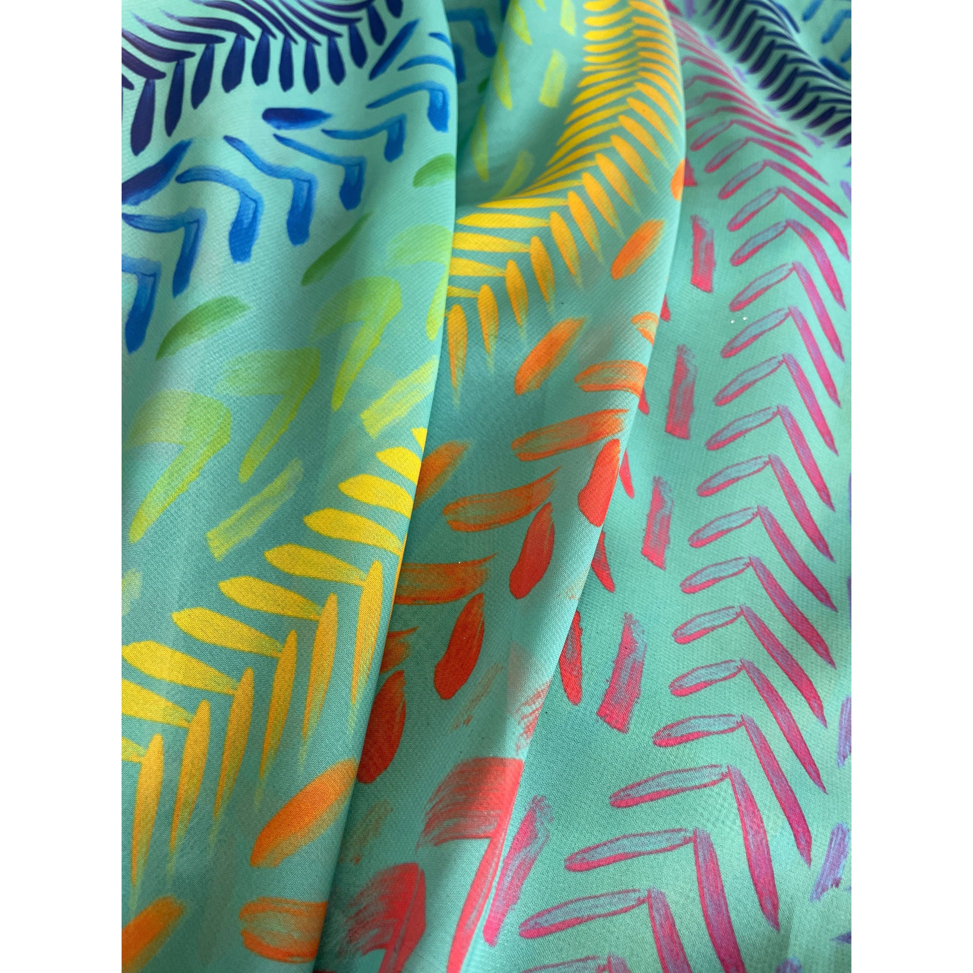 Revamp your wardrobe with Kiko Bliss fabric! This colorful chiffon flaunts a vibrant design that will make you stand out in any crowd. Dare to be bold and turn heads with this eye-catching fabric!