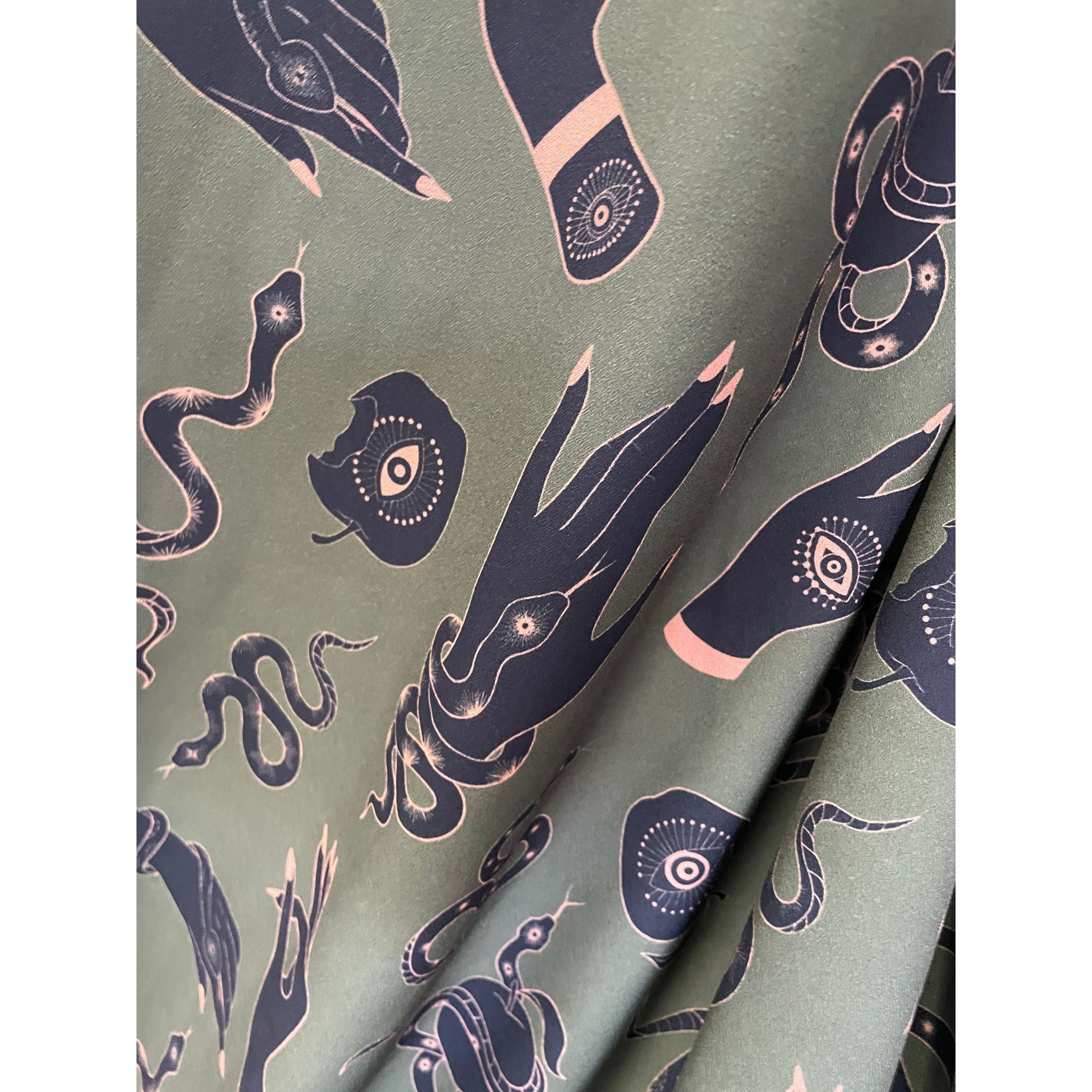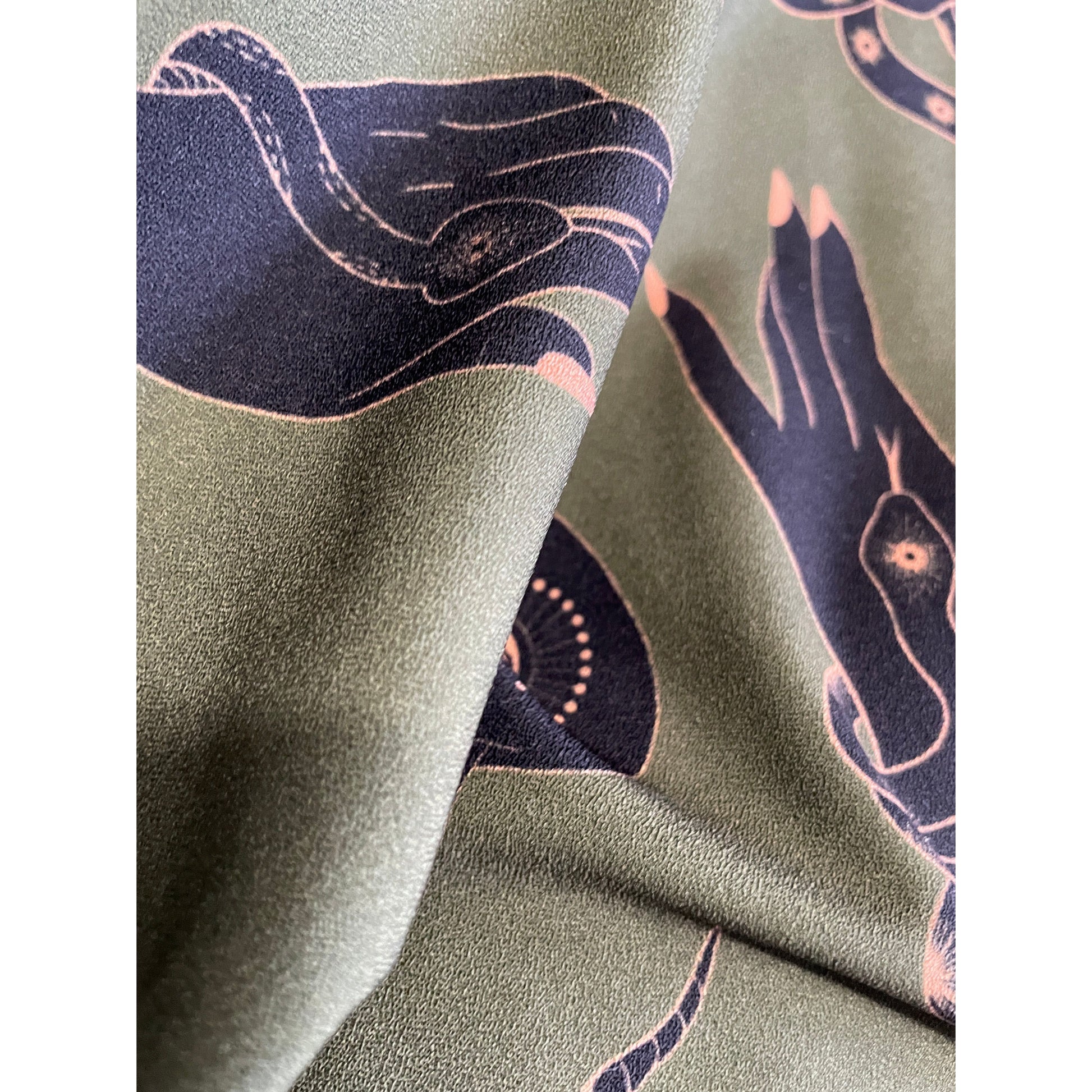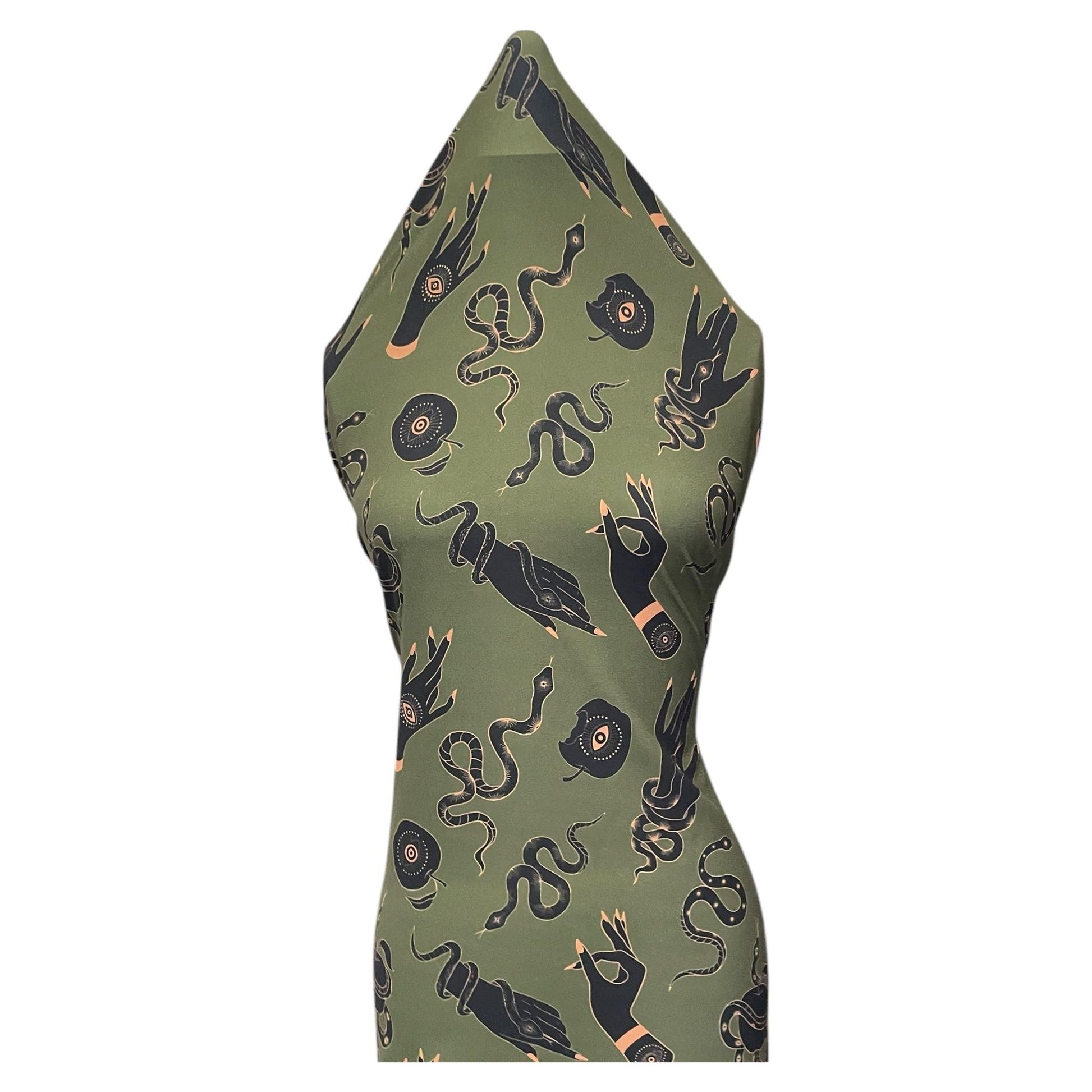 Introducing Stylish hands the perfect fabric for luxurious designs. The deep hunter green hue invokes a sense of calm and elegance while the light weight crepe texture allows for limitless creativity. Let your designs soar to new heights with Vibes galore